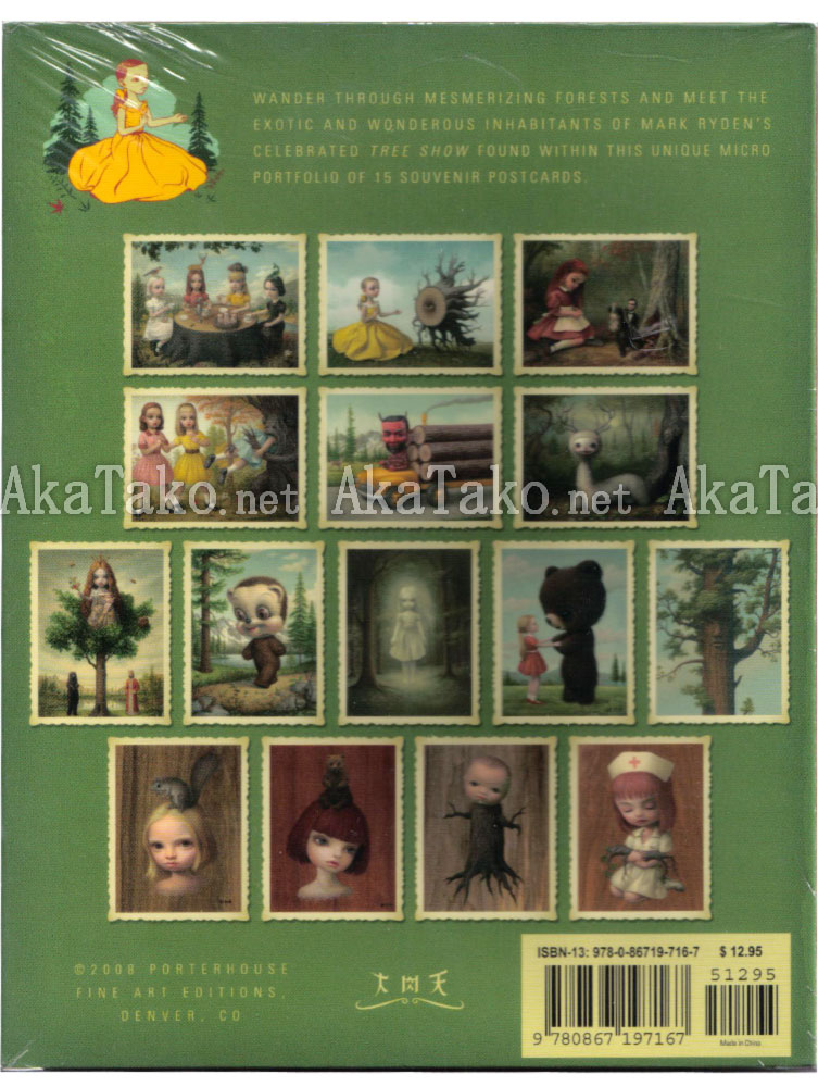 "Wander through the mesmerizing forests and meet the exotic and wonderous inhabitants of Mark Ryden's celebrated Tree Show found within this unique micro portfolio of 15 souvenir postcards."