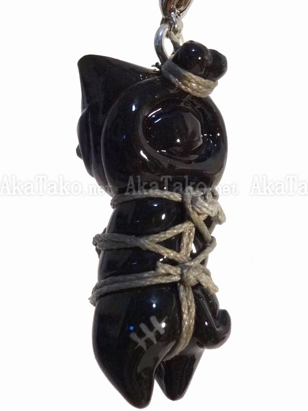 The black cat goes monochrome with all gray accessories. Ready for a night on the town (or indoors!) his gray mask matches his gray ropes tied in karada design. Kinbaku cell phone strap handmade in Japan and signed by the artist (in gray on back). Comes on a paper display card as shown in second photo and has a lobster claw clasp to make attachment easier.