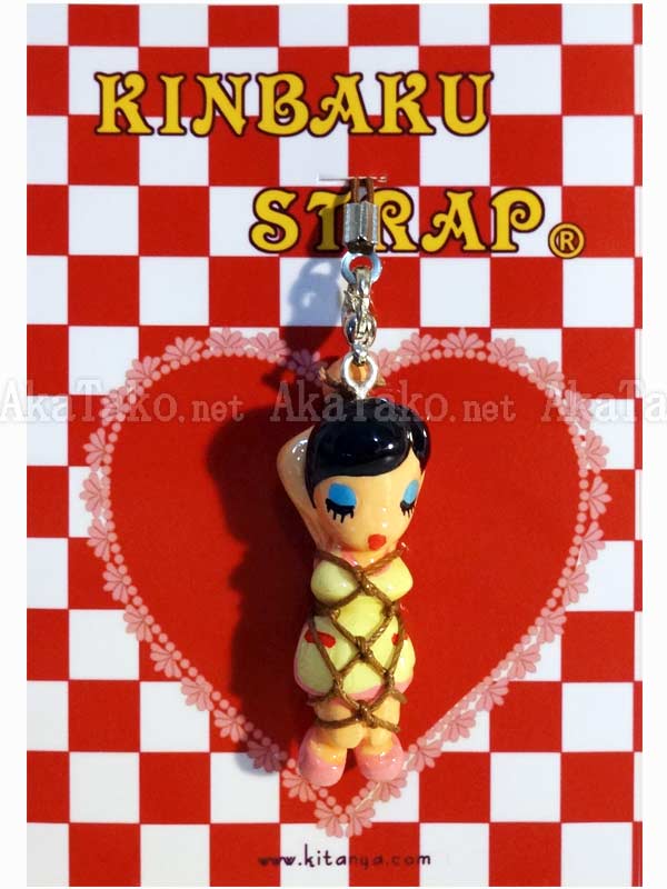 Naughty housewife wears nothing but an apron and pink slippers as she is suspended by her hands in Japanese rope bondage. Kinbaku cell phone strap handmade in Japan and signed by the artist (in red on back). Comes on a paper display card as shown in second photo and has a lobster claw clasp to make attachment easier.