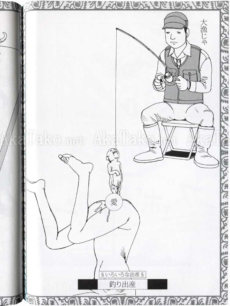 Mini book filled with fanciful sex positions, intense erotic play, and bizarre child births. All images are black and white with Japanese captions and text.