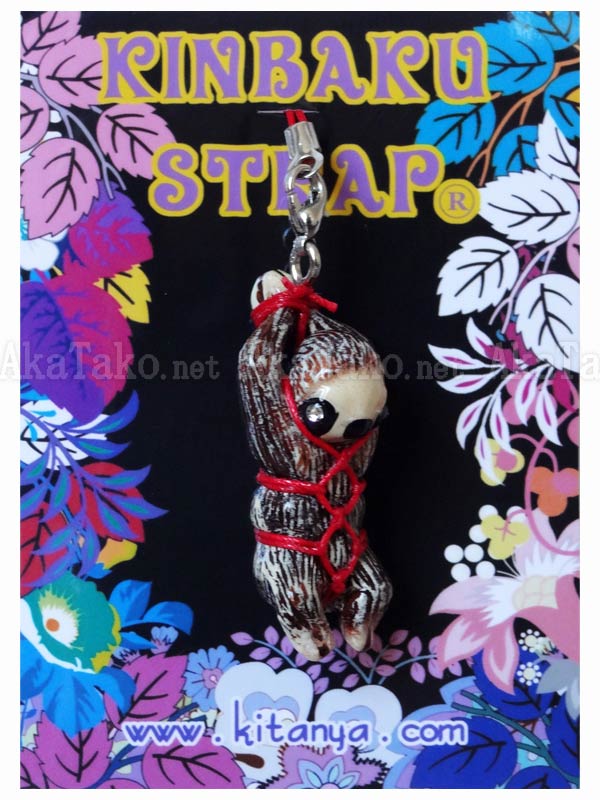 Sloth kinbaku charm. Kinbaku cell phone strap handmade in Japan and signed by the artist (in red on back). Comes on a paper display card as shown in second photo and has a lobster claw clasp to make attachment easier.