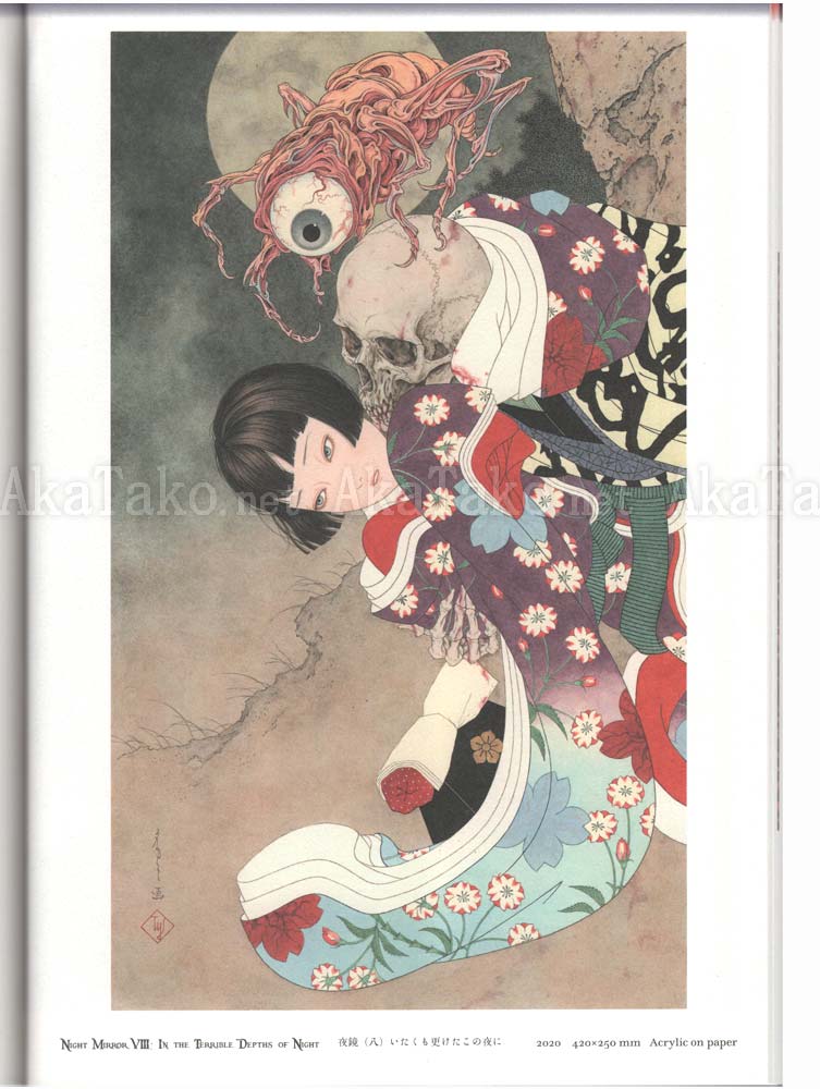 Takato Yamamoto's latest book is packed with his strong influence by Japanese traditional aesthetics and Ukiyo-e master Tsukioka Yoshitoshi and illustrator Ito Hikozo. These artworks are all previously unpublished in his earlier monographs. Themes include samurai, oni, geisha, courtesans, classic Japanese films and novels, spring, ghosts, and shunga.