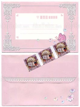 Set includes six pieces of writing paper (blank on reverse), three envelopes with no gumming or closures, and three stickers.