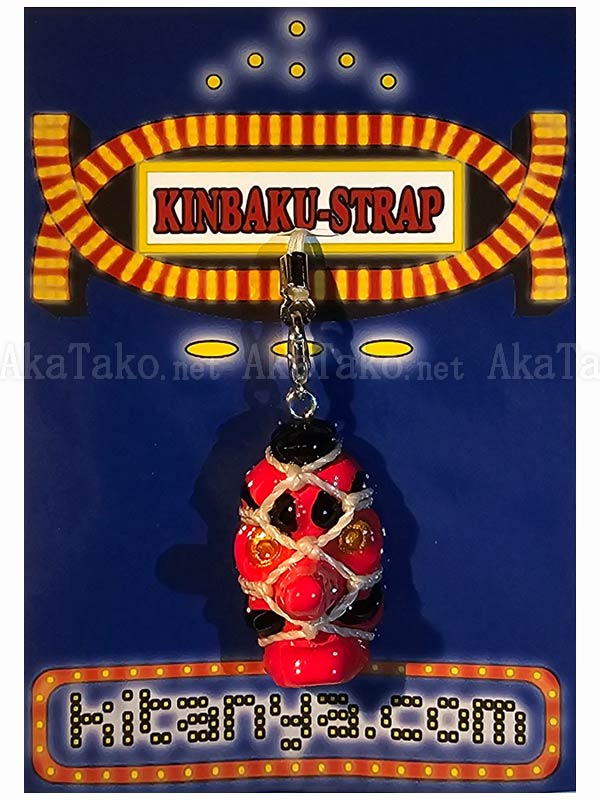 Tengu mask is going to have a hard time sticking his big nose anywhere while he's tied up in Japanese rope bondage! Kinbaku cell phone strap handmade in Japan and signed by the artist (in gold on back). Comes on a paper display card as shown in second photo and has a lobster claw clasp to make attachment easier.