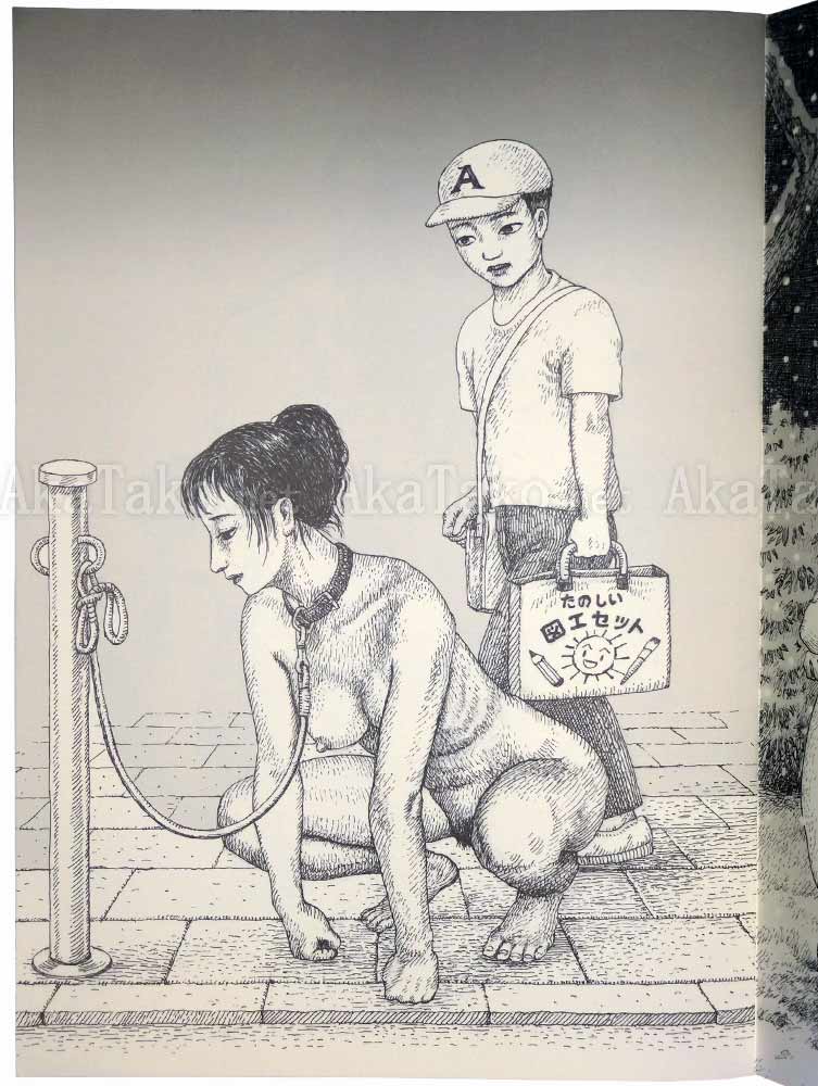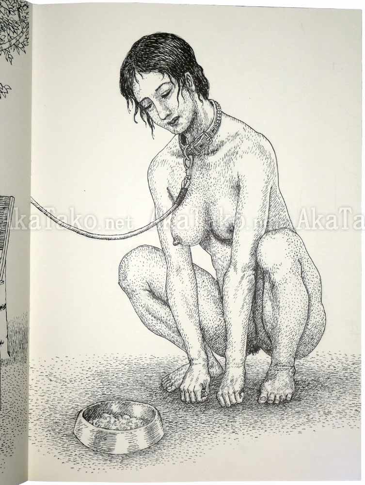 "Reduced to the state of domestic animals, stripped naked, humiliated, Asaji Muroi's heroins remain pure despite everything and [are] secretly happy." - excerpt of introductory text in both English and French.