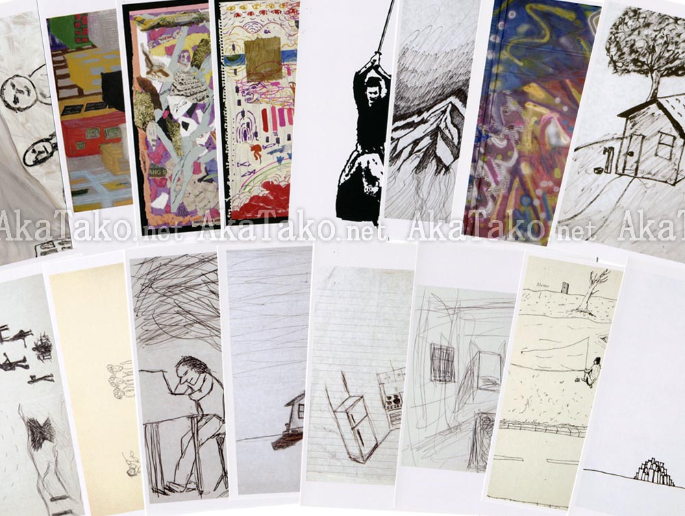 Postcard set of original artwork drawn and painted by Asano Tadanobu. Back of each card says © Tadanobu Asano. Total of 16 cards.