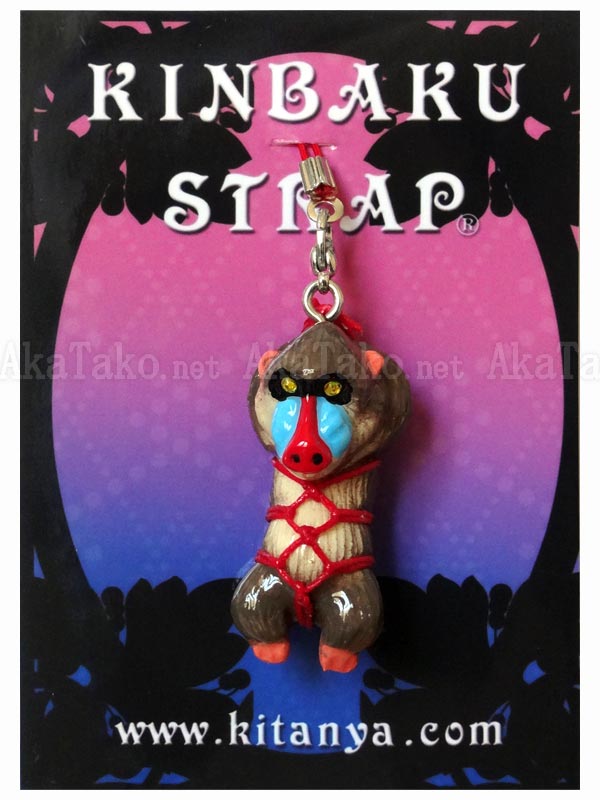 Baboon kinbaku charm. Kinbaku cell phone strap handmade in Japan and signed by the artist (in red on back). Comes on a paper display card as shown in second photo and has a lobster claw clasp to make attachment easier.