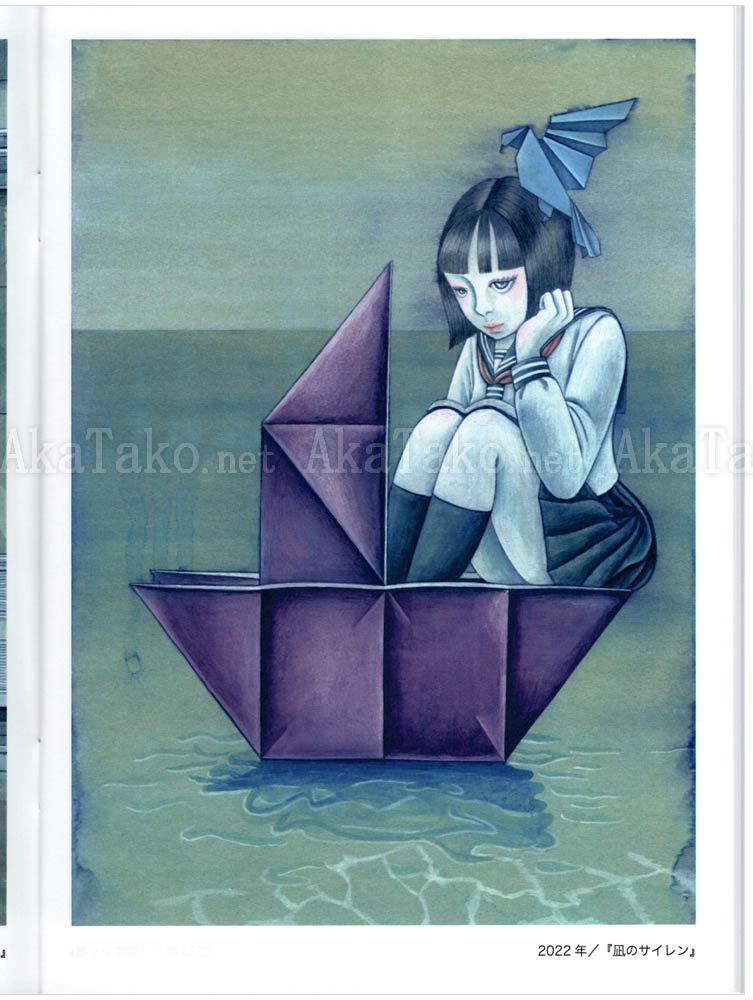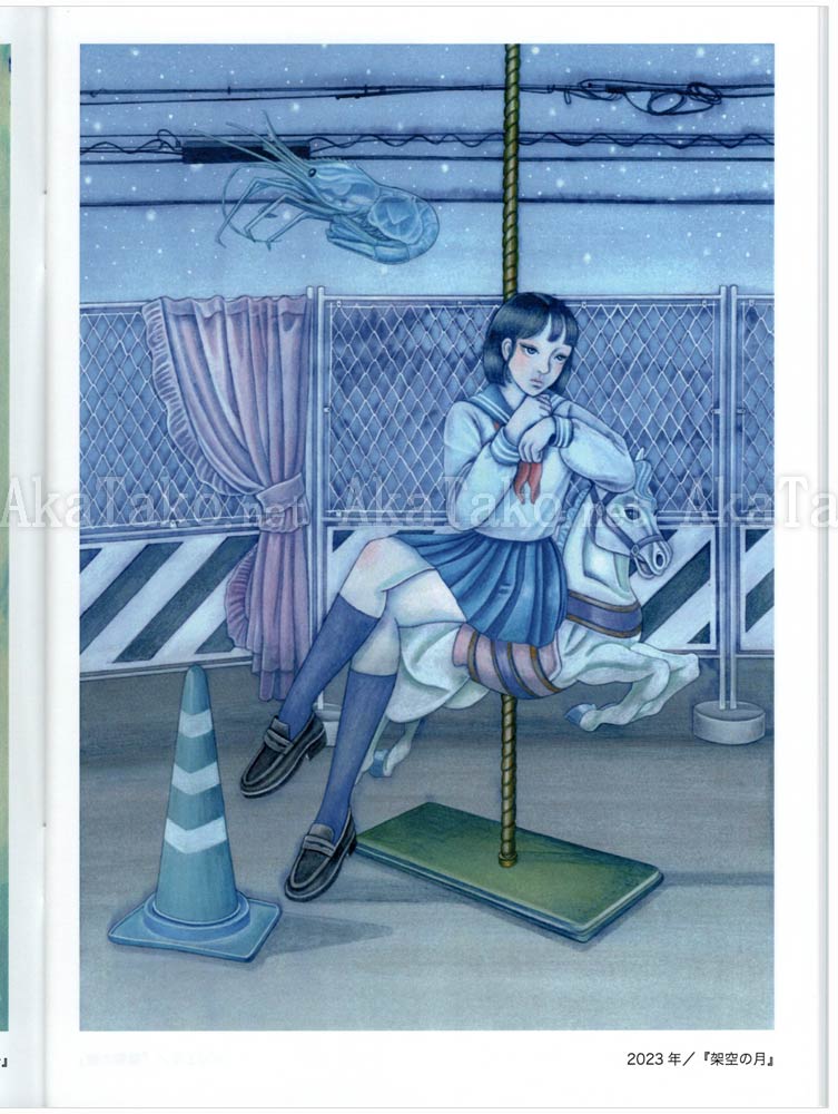 Brand new book produced by Chika Yamada collects her works from 2020-2023. Oversized blue schoolgirls inhabit a surreal city where things are not always as they seem. Sea creatures float through the air, spiderwebs become playthings, and wild animals become close friends.