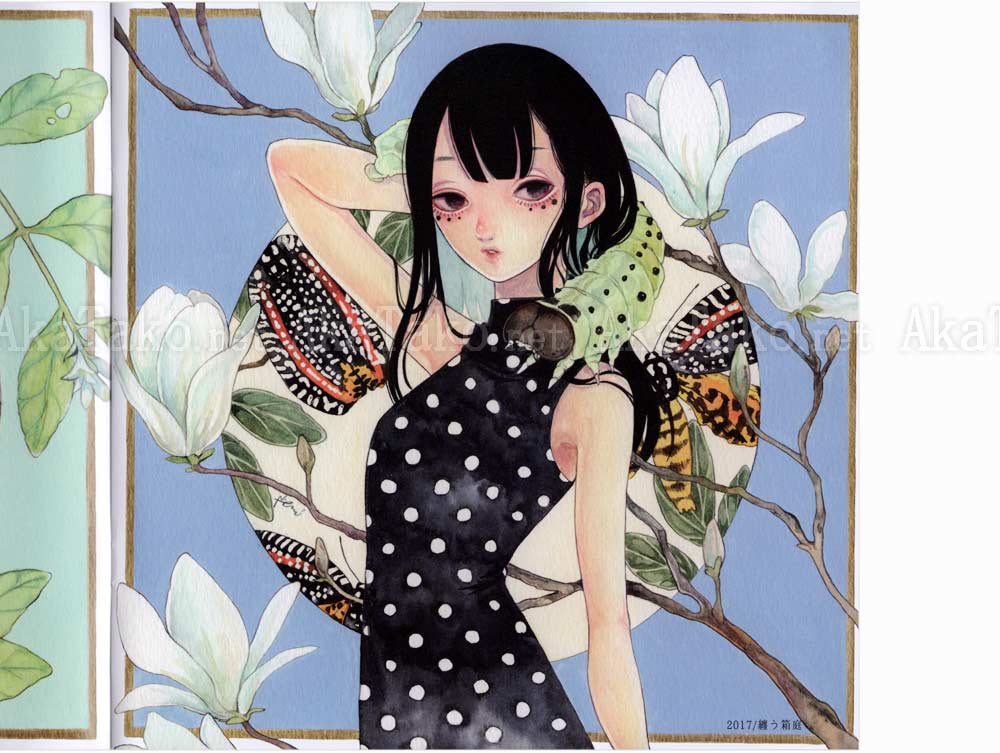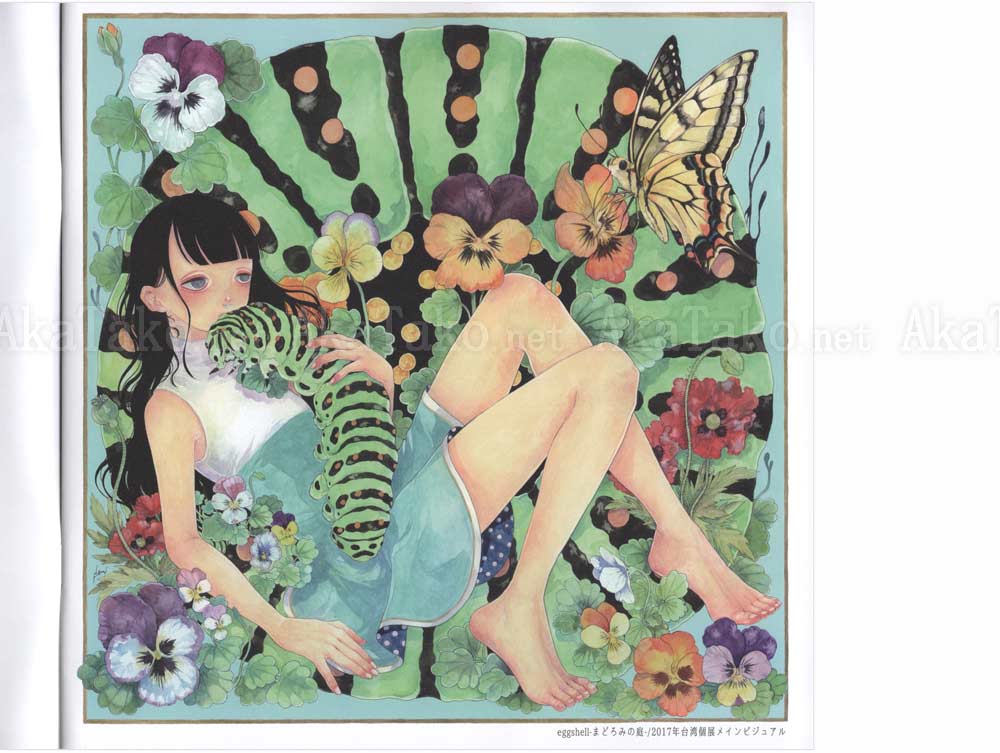Brand new book of Em Nishizuka artworks with girls and boys adorning their bodies and clothes with insects. Hair ornaments, earrings, and the favorite caterpillar scarf. Approximately 30 full color illustrations.