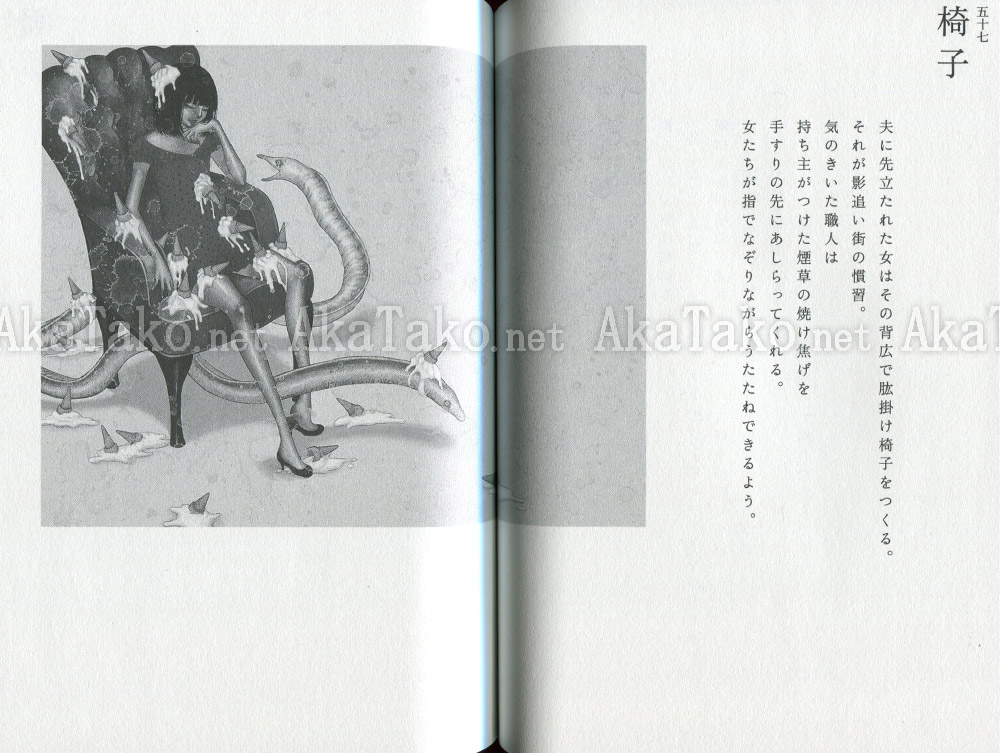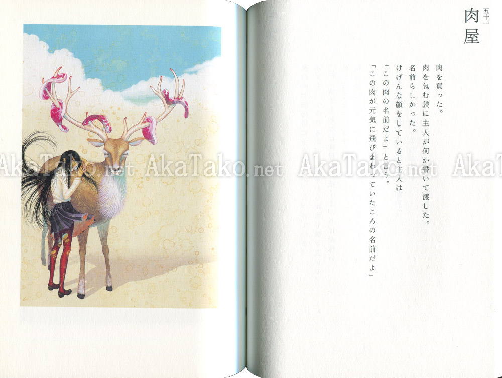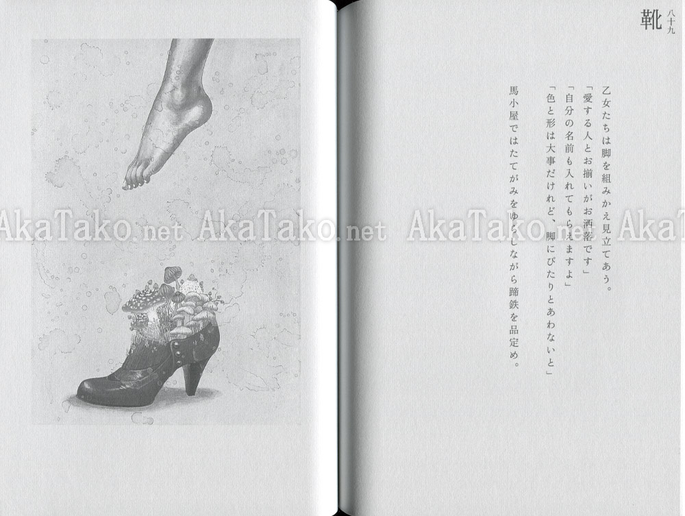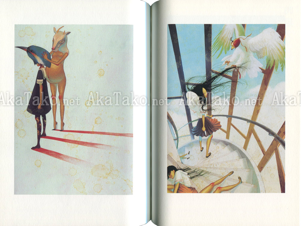 Japanese novel by Sakurako Takeyachi featuring artwork by Fuco Ueda titled "Shadow Chaser's Street" (Kage oi no machi). There are approx. 100 pages in the book - most of which are text written in Japanese. There are about 7 color prints in the book and 5 black and white.