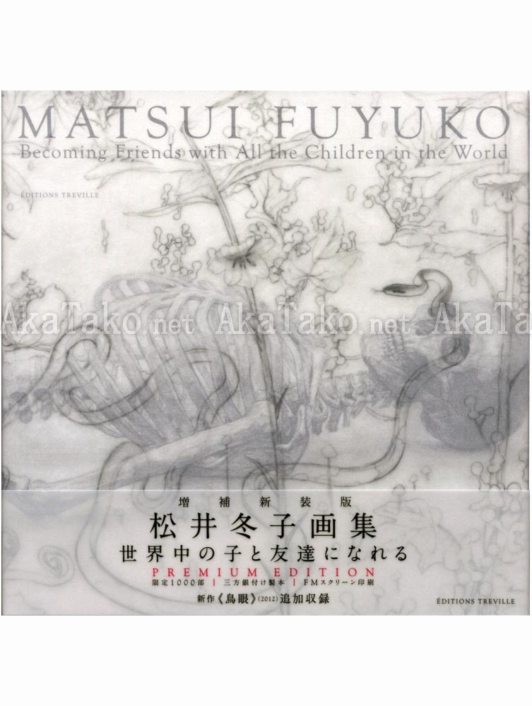 This premium edition of the extended catalog includes silver edged pages and is SIGNED by Fuyuko Matsui inside the front cover. Limited edition of only 1000 pieces. Published using a high quality offset printing method to faithfully reproduce the fine details of her work. Catalog was produced for the exhibition "Becoming Friends with All the Children in the World" at the Yokohama Museum of Art. Extended edition includes photos of the exhibition, additional descriptions, and six previously unpublished works (total of 113 full color, finished paintings, and black & white pencil sketches).