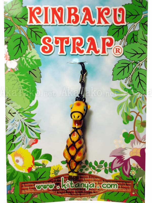 The tall giraffe is no match for Japanese rope bondage in a geometric karada pattern. He'll have to wait to roam the plains until someone lets him loose. Kinbaku cell phone strap handmade in Japan and signed by the artist (in brown on back). Comes on a paper display card as shown in second photo.