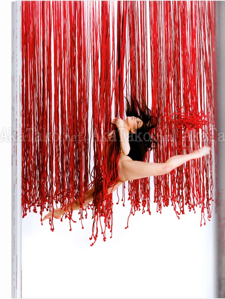 "The theme of Red series is 'connection'. When tying someone, it's not about capturing or tying that person. ... To me it feels like I am tying myself with the model like strings connecting two paper cups to make a paper toy telephone. ... This series expresses mothers, ancestors, nature, peers, DNA, the future, connections between hearts, inspiration, and other things. People are not alone. Everyone is connected to someone. ..." (Excerpt from text printed in book by Hajime Kinoko.)