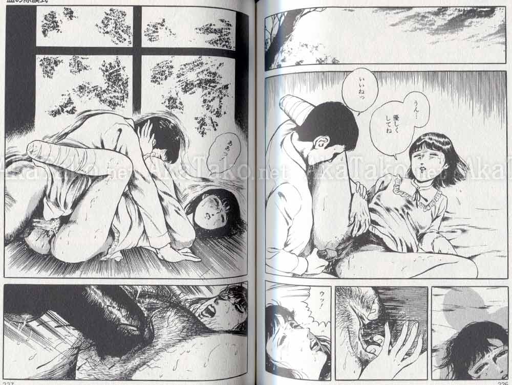 Very violent and sexual manga by Jun Hayami contains twenty individual stories. Each one revolves around an angelic girl and the story of her becoming bloodstained. First 16 pages are full color, remaining pages are black and white. UNSIGNED copy.