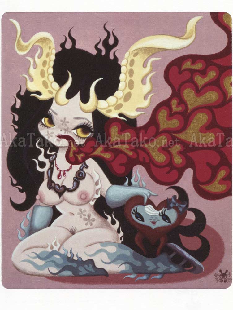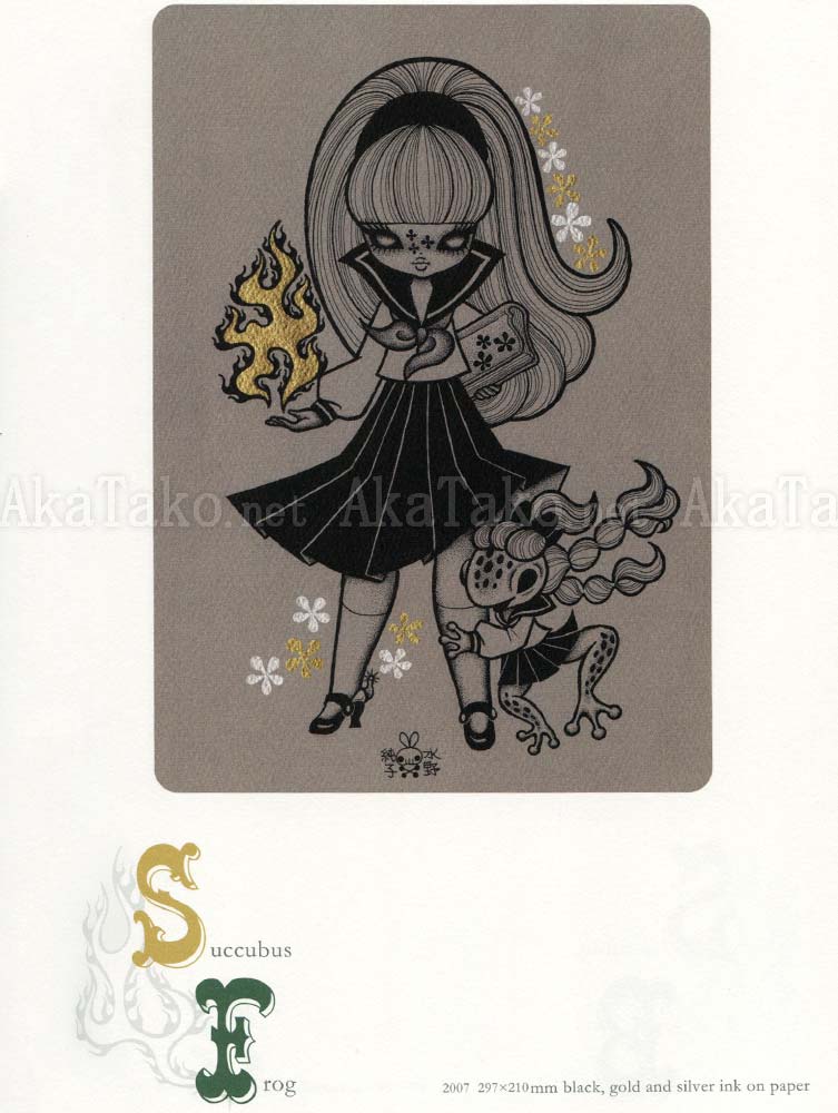 Larger sized book is filled with Junko Mizuno's sweet and scary illustrations with titles like: Anatomy Panda, Femme Fatale, Succubus Beast, The School of Witches, Playing Mother Crab, My Sweet Octopus, Mousetrap, Menstruation, Pregnancy, Kappa Lady Sakura, and MANY more.