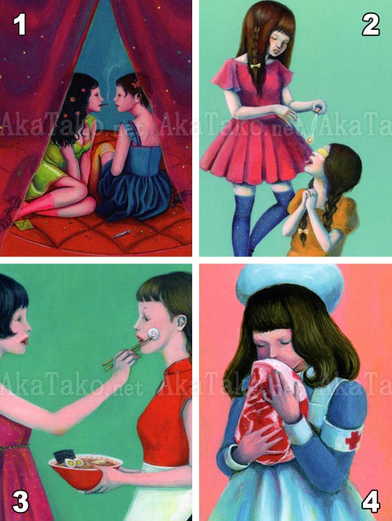 Your choice between four postcards of Kana Miyamoto's artworks. Each card measures approximately 5.85" x 3.9" (14.8 x 10cm).