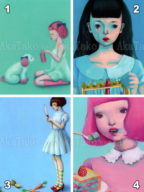 Your choice between four postcards of Kana Miyamoto's artworks. Each card measures approximately 5.85" x 3.9" (14.8 x 10cm).