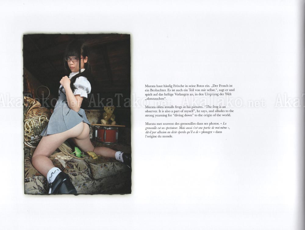 Kenichi Murata depicts pale and fallen beauties from old fairy tales - impoverished aristocratic ladies living alone in derelict houses. The youthful girls contrast sharply with their decayed surroundings. Left page has a smaller photo + text (photo insight, Japanese poetry, etc.); right page has a full page color photo.