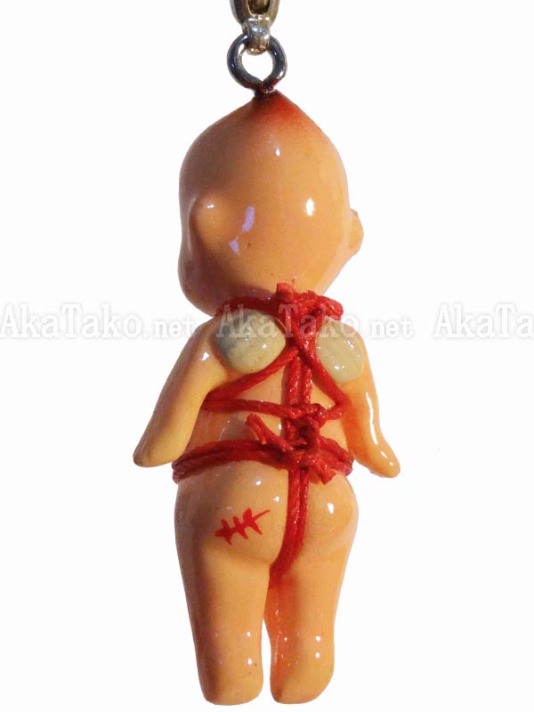 Kewpie doll doesn't mind a little Japanese rope bondage from time to time - as long as it's a pretty karada pattern! Kinbaku cell phone strap handmade in Japan and signed by the artist (in red on back). Comes on a paper display card as shown in second photo and has a lobster claw clasp to make attachment easier.