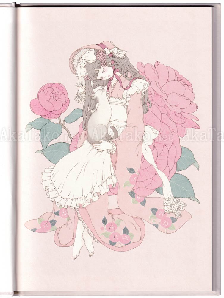 Kira Imai's delightful pastel dream book "Hitosaji Hime" (One Spoon Princess) is full of dreamy soft illustrations and a chapter of tiny princesses with oversized flowers, cakes, and eating utensils. Book cover is a shimmering pale pink.