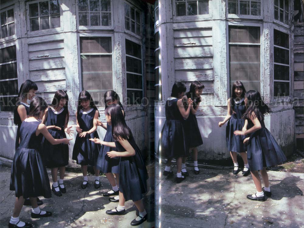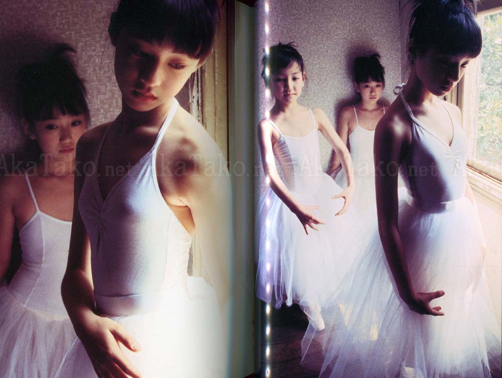 Photographs center around a group of Japanese girls who all live in a giant old mansion in the country. Each photograph features coordinating costumes - matching colors or same style. Ballerinas, swimming, exercise, frilly white dresses, black dresses with shiny patent leather mary-janes, etc. One of the models in the book is Chiaki Kuriyama.