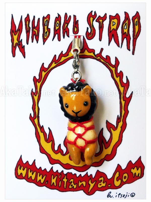 Lion kinbaku charm. Kinbaku cell phone strap handmade in Japan and signed by the artist (in red on back). Comes on a paper display card as shown in second photo and has a lobster claw clasp to make attachment easier.