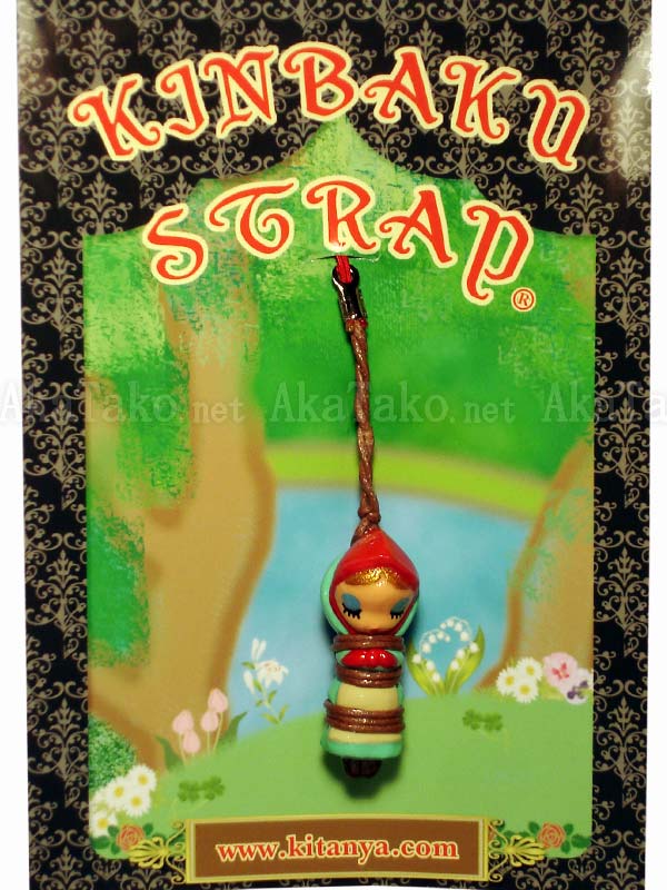 Little red riding hood may have escaped the wolf but she's not going to get out of this one too easily. Kinbaku cell phone strap handmade in Japan and signed by the artist (in red on back). Comes on a paper display card as shown in second photo.