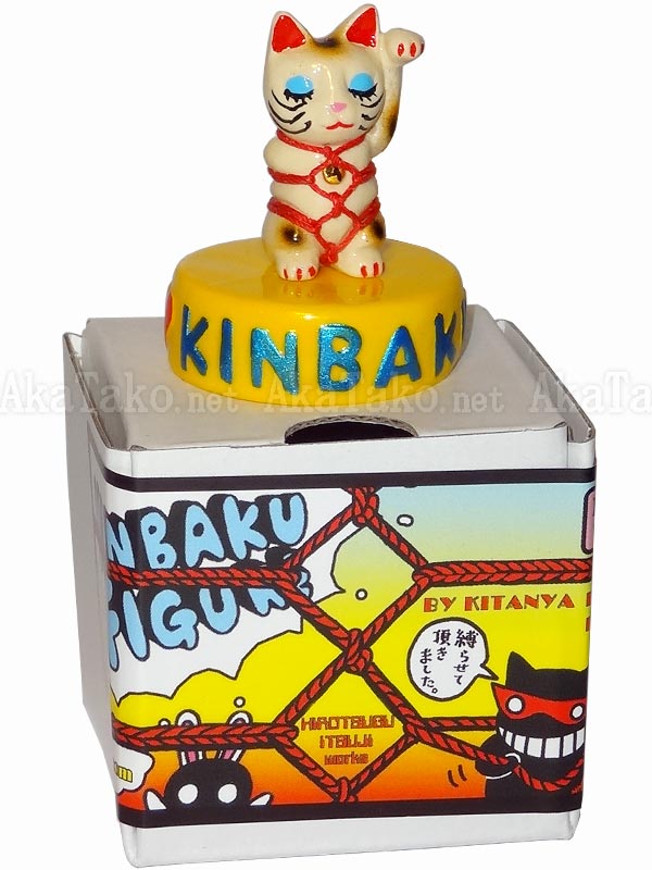 Mini Maneki Neko has gotten himself into a bind with some Japanese rope bondage. He still waves good luck and prosperity your way! Kinbaku doll handmade in Japan and signed by the artist (in red on back). Comes in a colorful cardboard box (shown in second photo). Hollow base reads "♥ Kinbaku Figure".