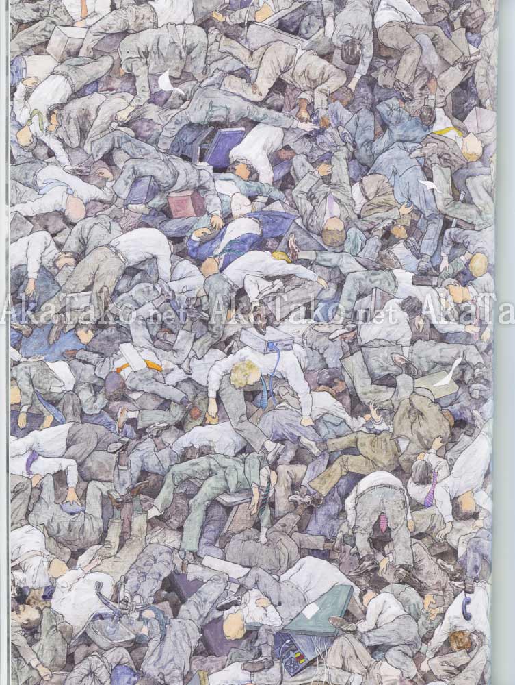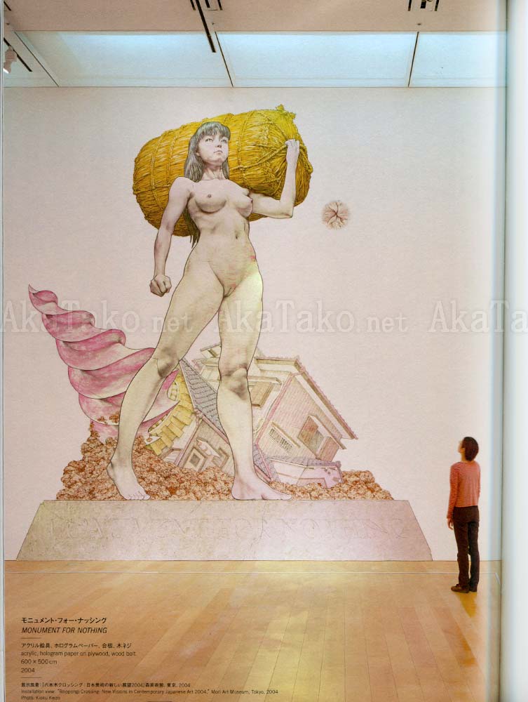 Large catalog retrospective of the works of Makoto Aida. Includes many photos of his exhibitions and works - including installations, paintings, murals, manga, sculptures, etc. Double length fold out pages to show a few of his larger works in their entirety. Bilingual (Japanese/English) titles, descriptions, and in depth analysis.