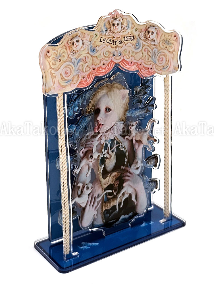 Special collaboration between Mari Shimizu and AkaTako.net ! Clear acrylic art stand assembles to display your favorite artwork in a 3D layered form. "Cait Sith" artwork first published in "Wonderland" book.