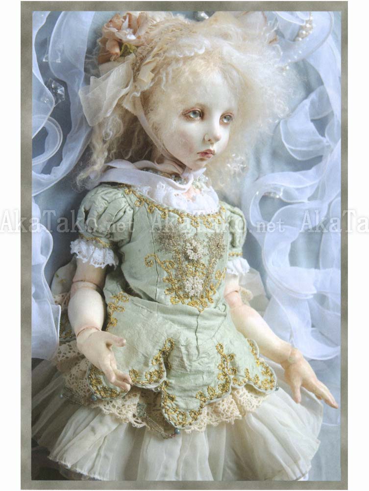 Set of four postcards by Japanese contemporary doll maker Mari Shimizu. Each card features a fascinating doll - one with rabbit ears and a torso jail keeping other rabbits safe, one with a cut away chest to expose a scene from the Garden of Eden, one pale and frilly in fine clothes, and one with a Victorian lace neck ruff.