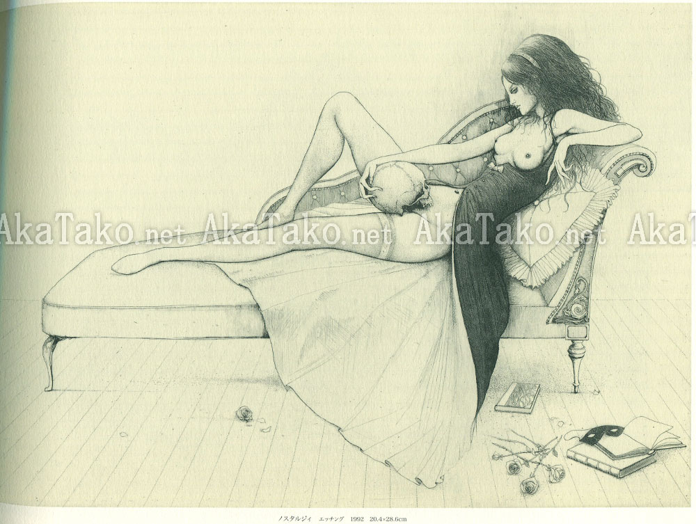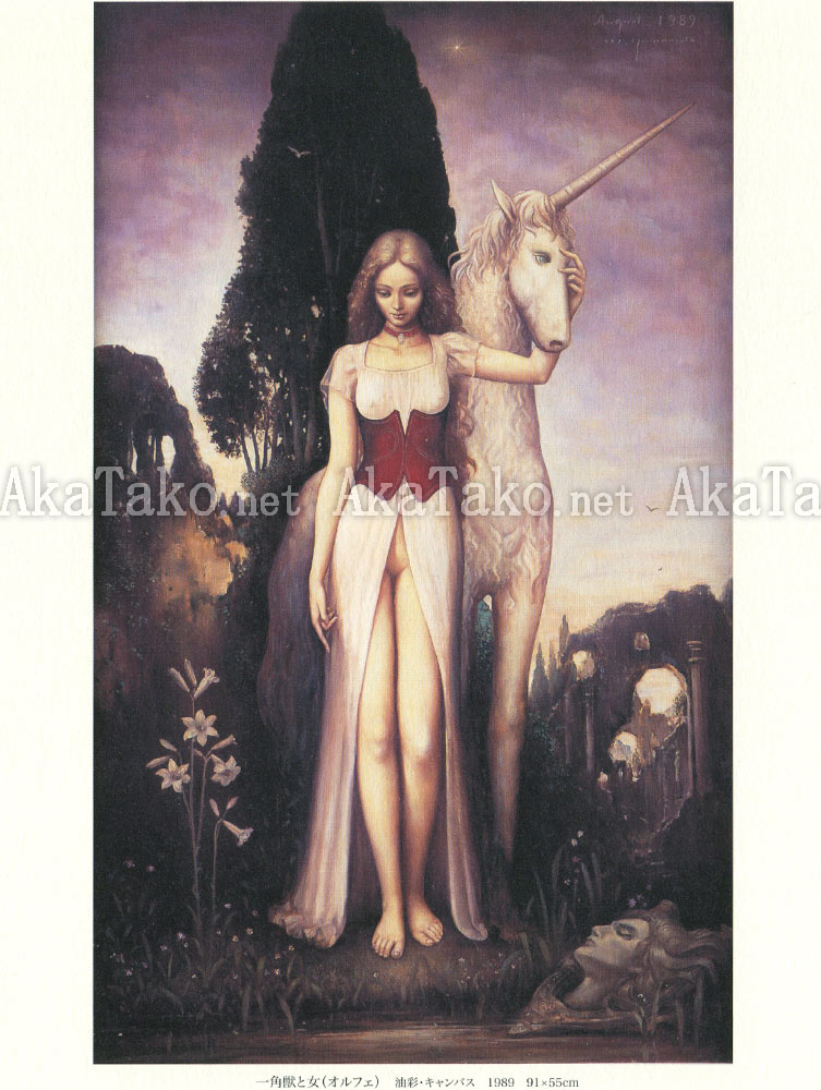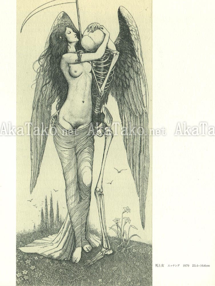 Large format softcover book of works by Japanese artist Mutsumi Yamamoto. About two-thirds black and white pencil drawings and a third full color paintings. Gorgeous works with a strong Art Nouveau sensibility.