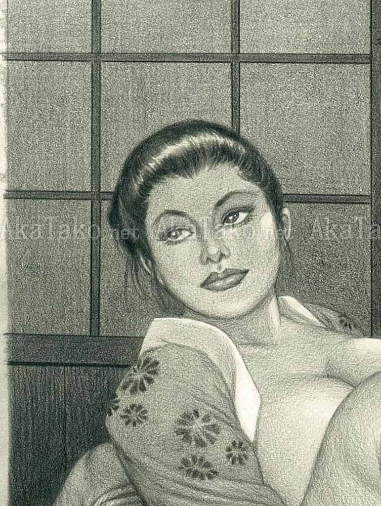 Pencil on paper, unframed. Measures approximately 8.25" x 11.675" (21x29.7cm). SIGNED "春" in lower right corner. Includes a certificate of authenticity.
