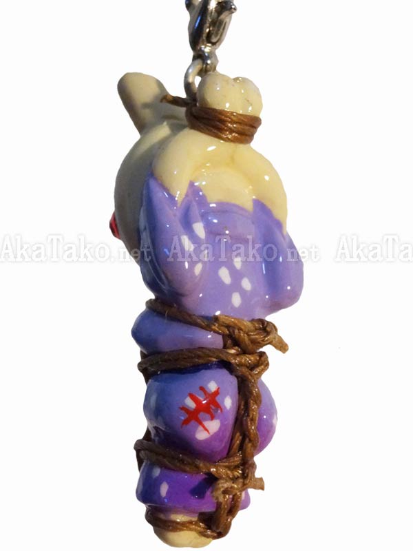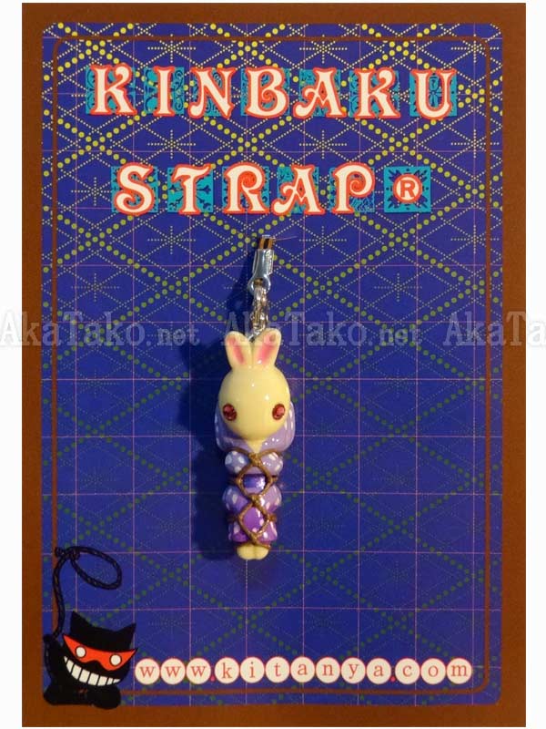 Cream colored bunny rabbit in a purple kimono is tied up in Japanese rope bondage and waiting to be attached to your phone. Kinbaku cell phone strap handmade in Japan and signed by the artist (in red on back). Comes on a paper display card as shown in second photo and has a lobster claw clasp to make attachment easier.