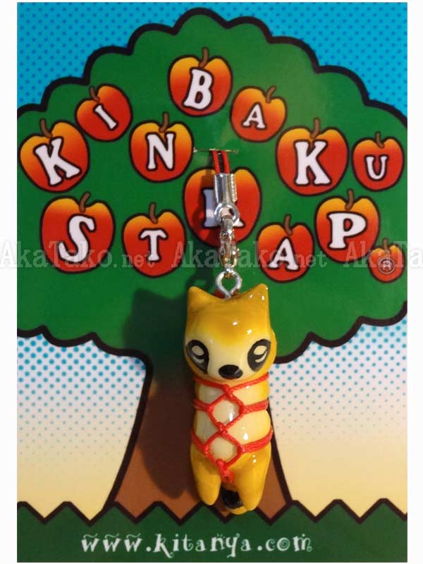 The raccoon can't make any mischief when he's tied up in Japanese rope bondage. Kinbaku cell phone strap handmade in Japan and signed by the artist (in red on back). Comes on a paper display card as shown in second photo and has a lobster claw clasp to make attachment easier.