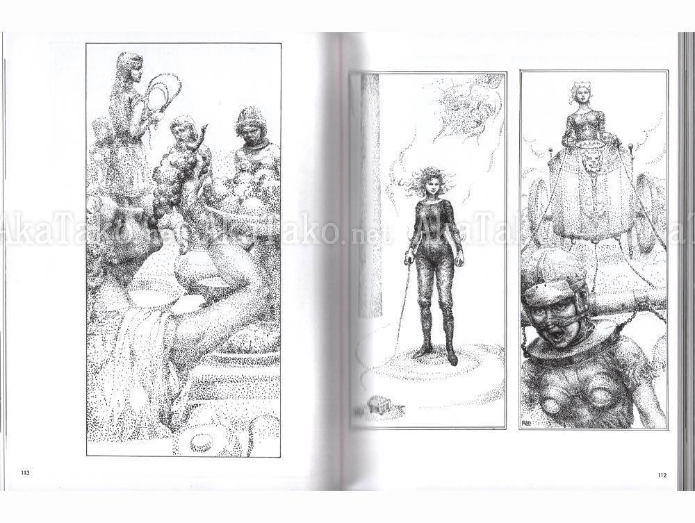 Bilingual text with EN translations for most JP including EN preface and reminiscences by Ran Akiyoashi's son Yuichi. Artworks are divided into four sections: Illusion and Eros, Portraits of Femme Fatales, Illusion of Paradise, Lewd and Cruel Dreams. Mostly black and white but with 16 full color pages.