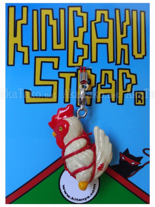Rooster kinbaku charm. Kinbaku cell phone strap handmade in Japan and signed by the artist (in red on back). Comes on a paper display card as shown in second photo and has a lobster claw clasp to make attachment easier.