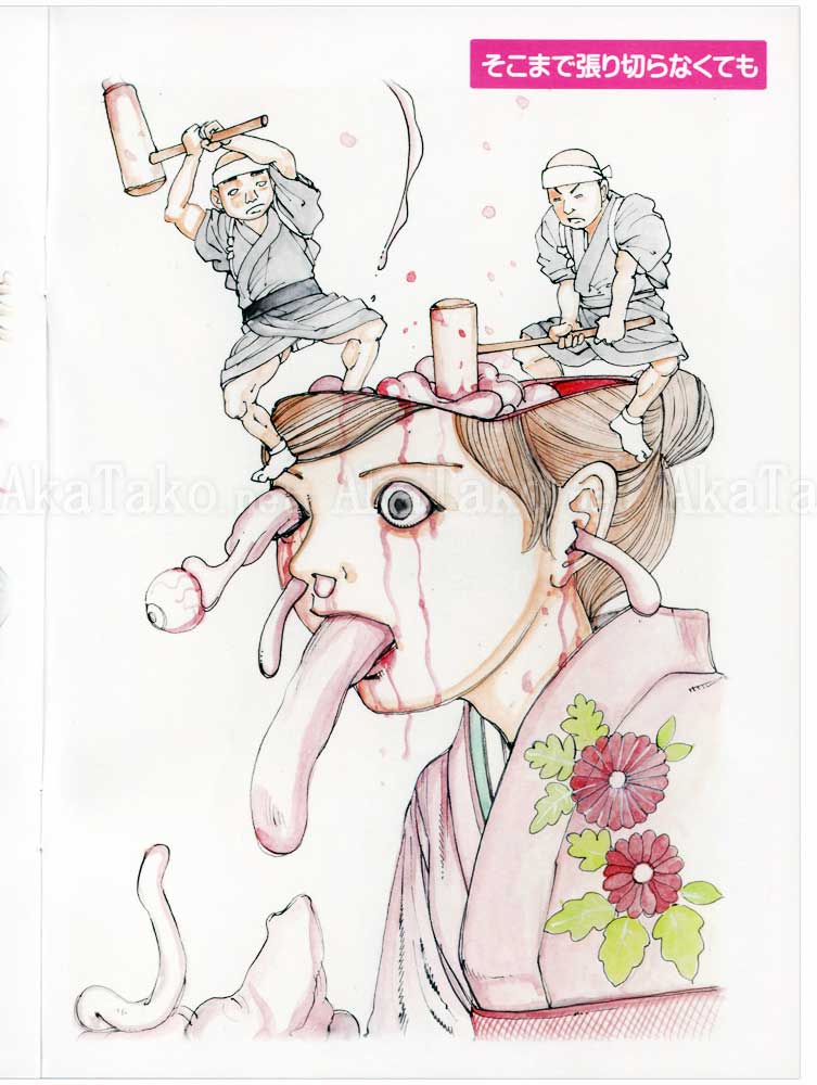 Mini monograph of very sweet and pretty girls with unusual things exploding out of their heads - like sheep, rabbits, Santa Claus, or mochi. Plus a few Christmas themed paintings!