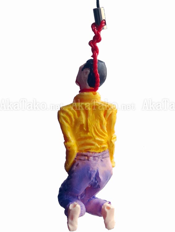 Handmade cell phone strap toy by Shintaro Kago from his "100 Famous Views of Corpses" series. A salary man has hung himself from a noose and his dead body hangs limp. Paint colors may vary a little because they are all individually created. If you need to see an exact photo please request one before buying.