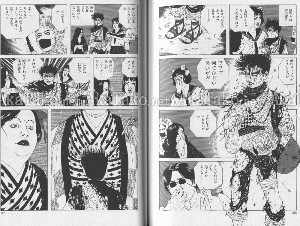 Comic book by Suehiro Maruo. Dust cover is a lovely shimmery silver paper. First page is full color followed by 26 pages that are black and white and red. All other pages are black and white. Text is 100% Japanese.