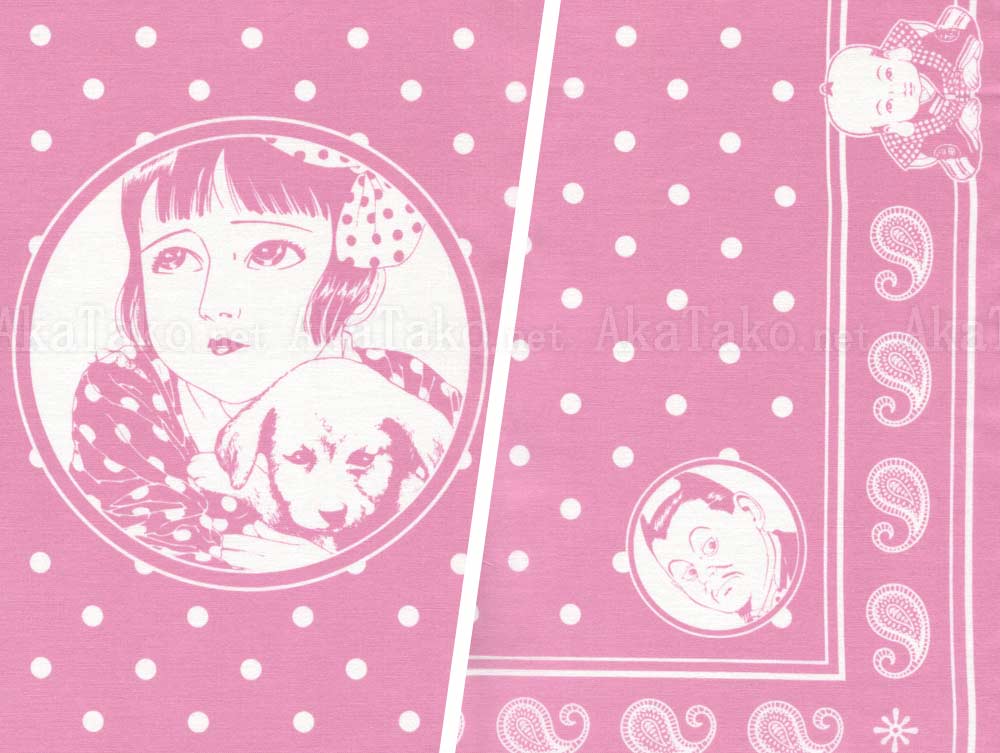 Your choice of BLUE or PINK square bandana featuring Midori in the center and other characters from Suehiro Maruo's "Shoujo Tsubaki" around the edges. Paisley and polka dot design background.