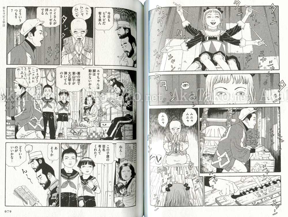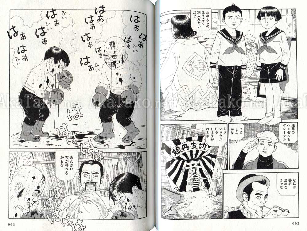 A pair of twins is sold to the local freak show by their single mother. The circus big top is in the center of the pleasure quarter and opens the curtain for a tour of hell by the pitiful twins. List of story titles.