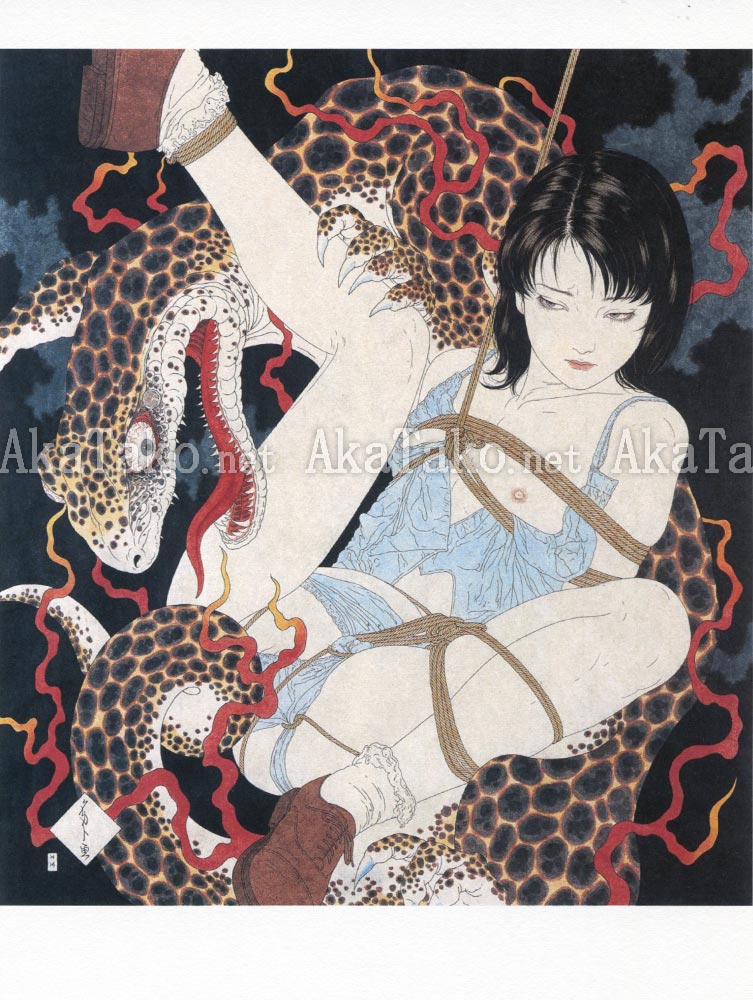 Wonderful book of art by Takato Yamamoto explores themes of sexuality and bondage mixed with innocence. Subdued girls and boys invite you to join their blood spattered world. SIGNED inside the front cover.
