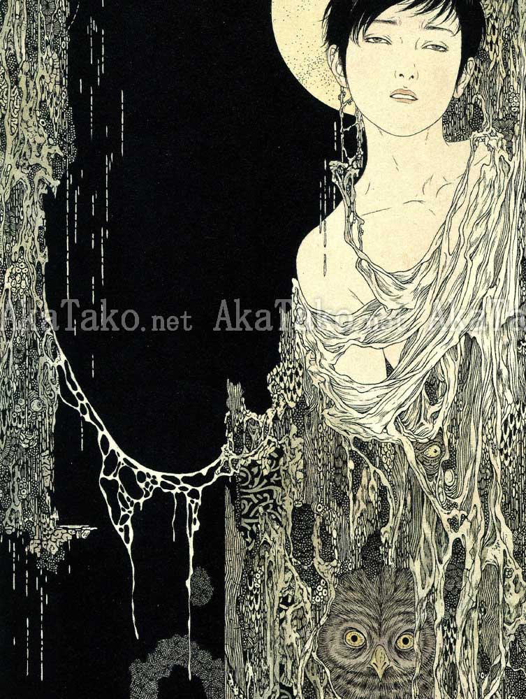 Single print from Takato Yamamoto's original print set 2. Features the work "Curtain of Night" 夜の帷 which is also reproduced in the Allure of Pharmakon book.