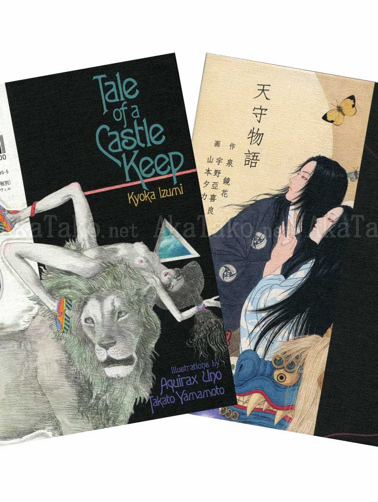 Bilingual book illustrated by Takato Yamamoto and Aquirax Uno celebrates the 100th anniversary of Kyoka Izumi's famous play "Tale of a Castle Keep" (Tenshu Monogatari). Izumi's modern fantasy adventures inspired many other famous writers including Akutagawa, Tanizaki, Kawabata, and Mishima.
