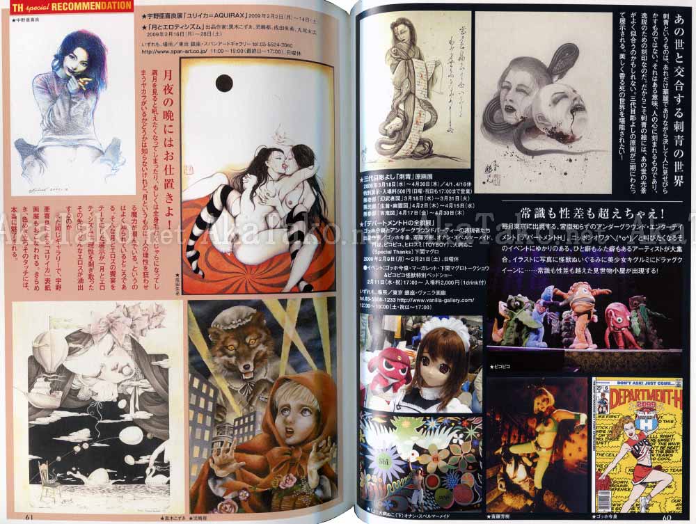 TAIKI, Atsushi Tani, Kizzimecca, Ken Nikai, Aquirax Uno, Kyo Nakamura, Felicien Rops, Romaine Brooks, Michael Manning, Vania Zouravliov, Irina Ionesco, Gilles Berquet, Peter Witkin, and others.