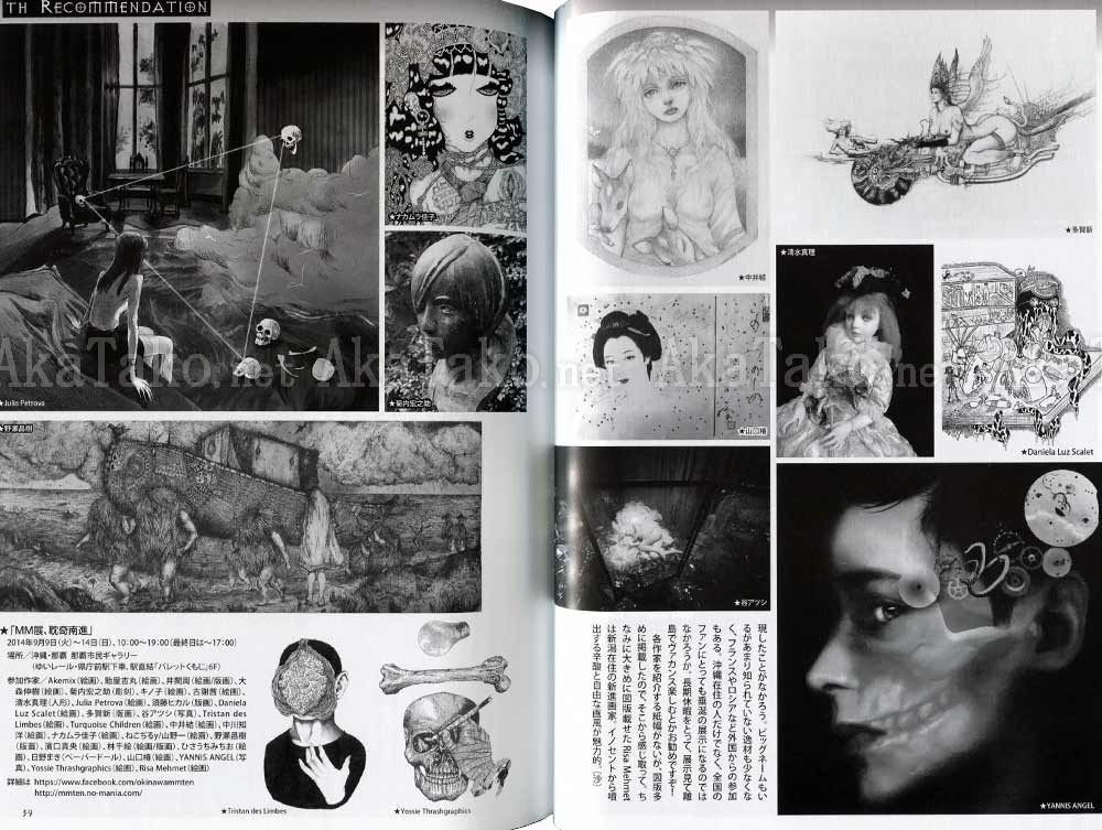 A section about Russian tattoos, Mandingo DVD, Mothra, Suehiro Maruo's Imo Mushi, 1Q84, Black Swan, La Pianiste, Pet Sematary, Basket Case, Emma Yohane (夜羽エマ) interview, Terror Live, and many others.