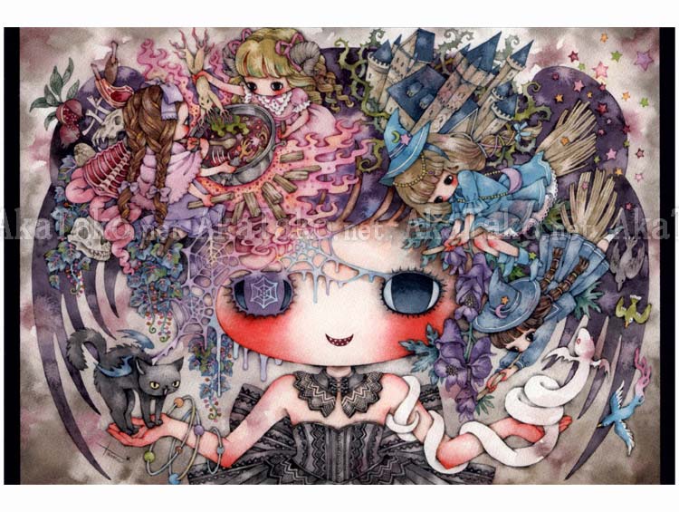 Your choice between four postcards of Tama's cute watercolor artworks. All originally printed in her book "Deep Memories". Each card measures approximately 3.9" x 5.875" (10 x 14.9cm).