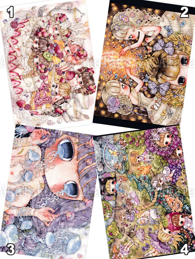 Your choice between four postcards of Tama's cute watercolor artworks. Each card measures approximately 5.875" x 3.9" (14.9 x 10cm).