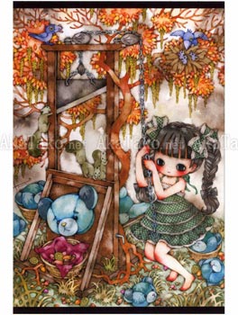 Set of four postcards with the cute and dark artwork of Tama. Features four images: For the Last, Monotonous Work, Mama Doesn't Know, and To Be Not Lonely.
